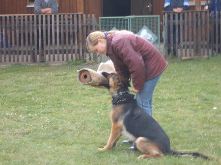 Evelyn Naumann mit Andra beim Schutz-dienst.